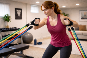 Resistance bands with handles are one of the most portable and versatile fitness products available. They allow users to perform strength training, mobility work, and rehabilitation exercises anywhere. Bands provide constant tension throughout movements, which helps improve muscle activation. Multiple resistance levels allow gradual progression without heavy equipment. These bands are especially useful for warm-ups, stretching, and accessory exercises. They also support full-body workouts for those with limited space. Resistance bands are commonly used by physical therapists and trainers due to their low-impact nature.