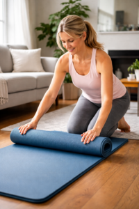 An extra-thick exercise yoga mat is the foundation of any home workout setup and supports everything from stretching to strength training. These mats provide cushioning that protects joints during floor exercises such as planks, sit-ups, yoga flows, and mobility drills. High-density foam construction helps absorb impact while maintaining stability for balance-focused movements. Many versions include textured surfaces to prevent slipping on hardwood or tile floors. A quality mat also helps define a dedicated workout space, which improves routine consistency. For beginners, the added thickness reduces discomfort and lowers the risk of strain during new exercises. This product is especially valuable for bodyweight workouts, yoga, pilates, and recovery sessions.